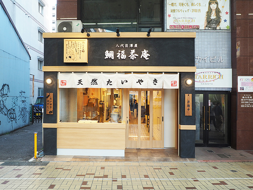 名古屋・大須商店街の一角にある老舗和菓子店 鯛福茶庵 八代目澤屋 の店舗設計を担当しました。